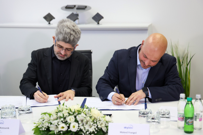State Secretary at Ministry of the Economy, Tourism and Sport, Matevž Frangež and SkyLabs CEO, Tomaž Rotovnik signed a co-financing agreement today for an investment valued at 5,688,622 €.